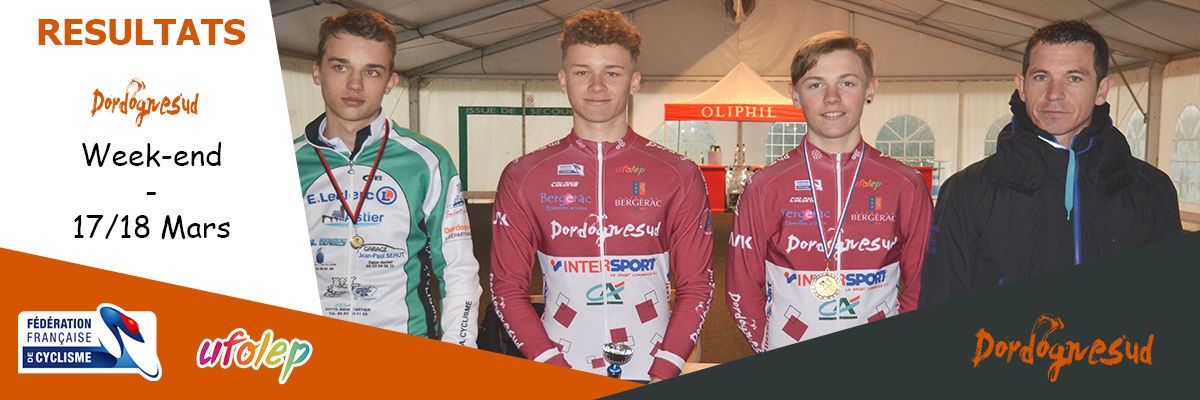 JUNIORS UFOLEP Trois juniors, Tom Royau, Léo Casado, et Benjamin Dufaure ont pris le départ de la course UFOLEP (2°C) à Bassillac. Une arrivée massive où Benjamin Dufaure prend la 4ème place.