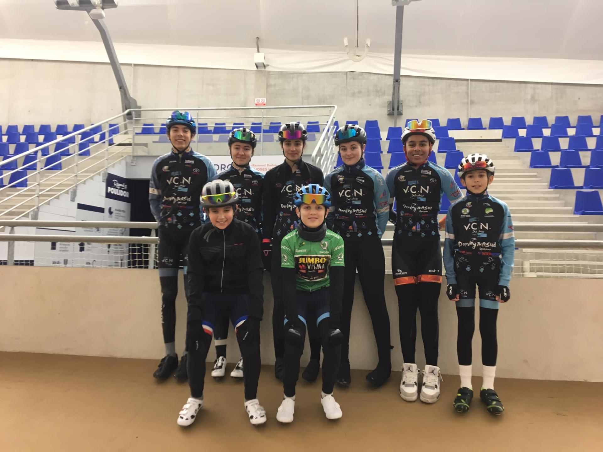 8 jeunes vététistes et routiers de Dordogne Sud Cyclisme ont participé au stage de piste organisé le 3 janvier par le Comité de Dordogne de cyclisme.